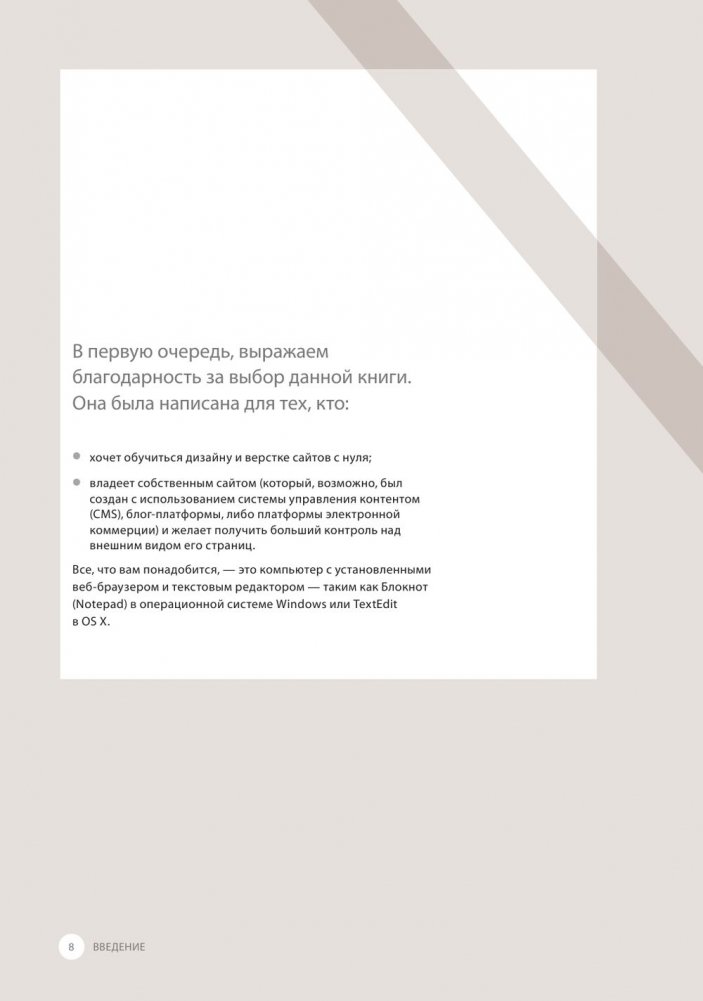 Независимо от стоящей перед вами задачи: спроектировать и разработать веб-сайт с нуля или получить больше контроля над уже существующим сайтом, эта книга поможет вам создать привлекательный, дружелюбный к пользователю веб-контент. Хотя код веб-страниц может немного вас пугать, загляните в книгу и вы увидите, насколько это руководство отличается от большинства остальных книг по веб-дизайну.