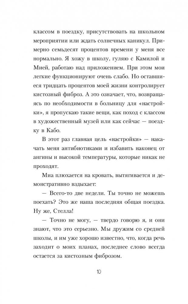 Стелла и Уилл бросают вызов судьбе и идут наперекор всем. Они встретились, когда больше всего нуждались в этом. Вот только их любовь обречена, ведь Уилл никогда не сможет коснуться Стеллы. Его прикосновение смертельно для девушки. Но истинная любовь не знает ни границ, ни запретов, и она определенно стоит целой жизни.