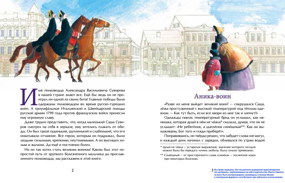 Великий полководец Александр Суворов был в детстве слабым и болезненным. Совсем не таким, как знаменитые герои, которым он хотел подражать. Но он мечтал быть военным! Став взрослым, Суворов не проиграл ни одной из своих битв. А началась эта история с того момента, когда маленький мальчик решил, что навсегда забудет слова «не могу».