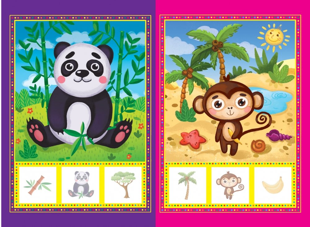 Внутри книжки вы найдёте 10 картинок. Где обитают изображённые на них животные? Чем они питаются? Помогите малышу ответить на эти вопросы и найти в наклейках верные ответы. Поместите наклейку в нужную область под картинкой. Похвалите малыша за хорошую работу!