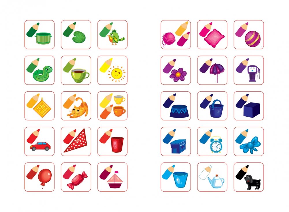 Внутри книжки вы найдёте 10 картинок. Предложите малышу рассказать, какого цвета предметы на каждой из них. Найдите в наклейках правильные ответы и помогите ребёнку приклеить их в нужную область под картинкой. Похвалите малыша за хорошую работу!