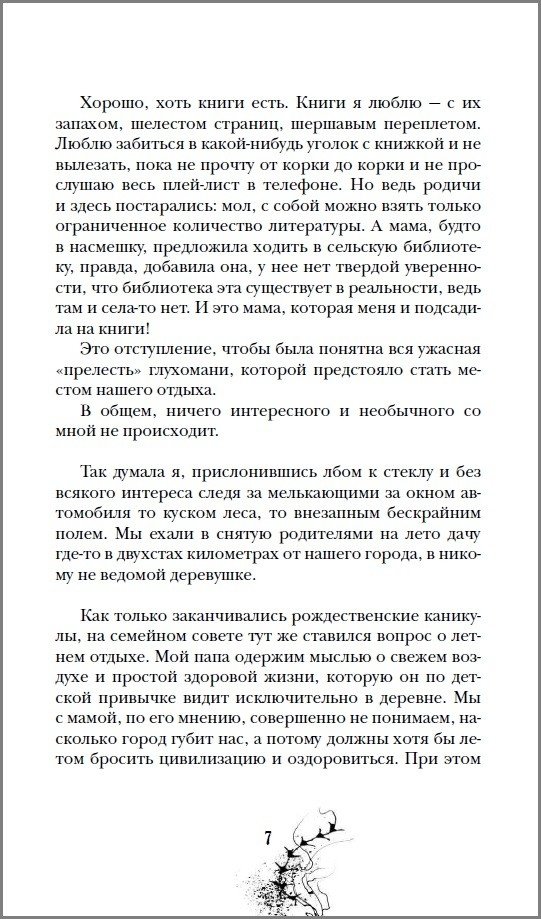 С Викой никогда ничего не происходит и произойти не может – она в этом твердо уверена. Вот и теперь самое страшное, что ей грозит, – это летний месяц в глухой деревеньке, в старом доме на самом краю леса, вдали от друзей и интернета. Только деревня какая-то странная – не отмечена ни на одной карте. За высокими заборами прячутся тихие, будто вымершие, избы. Во дворе Викиного дома в зарослях малины скрывается темный, бездонный колодец, из которого веет необъяснимым ужасом. А в глубине густого, зеленого леса затаилось болото, откуда по ночам в деревню приходит оно – или она? – и зовет, и манит за собой. Кому по силам вырваться из ее объятий?