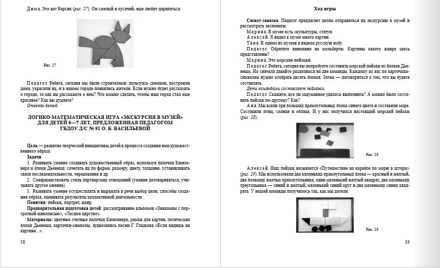 В пособии отражен опыт конструирования игровых методик по трем условно выделенным направлениям. Первое направление — познание дошкольниками свойств и отношений объектов в деятельности с блоками Дьенеша. Второе направление — использование игровых приемов при решении занимательных задач и игр-головоломок на плоскостное и объемное моделирование. Третье направление — освоение детьми количественных, числовых отношений, действий сложения и вычитания, связей и зависимостей.