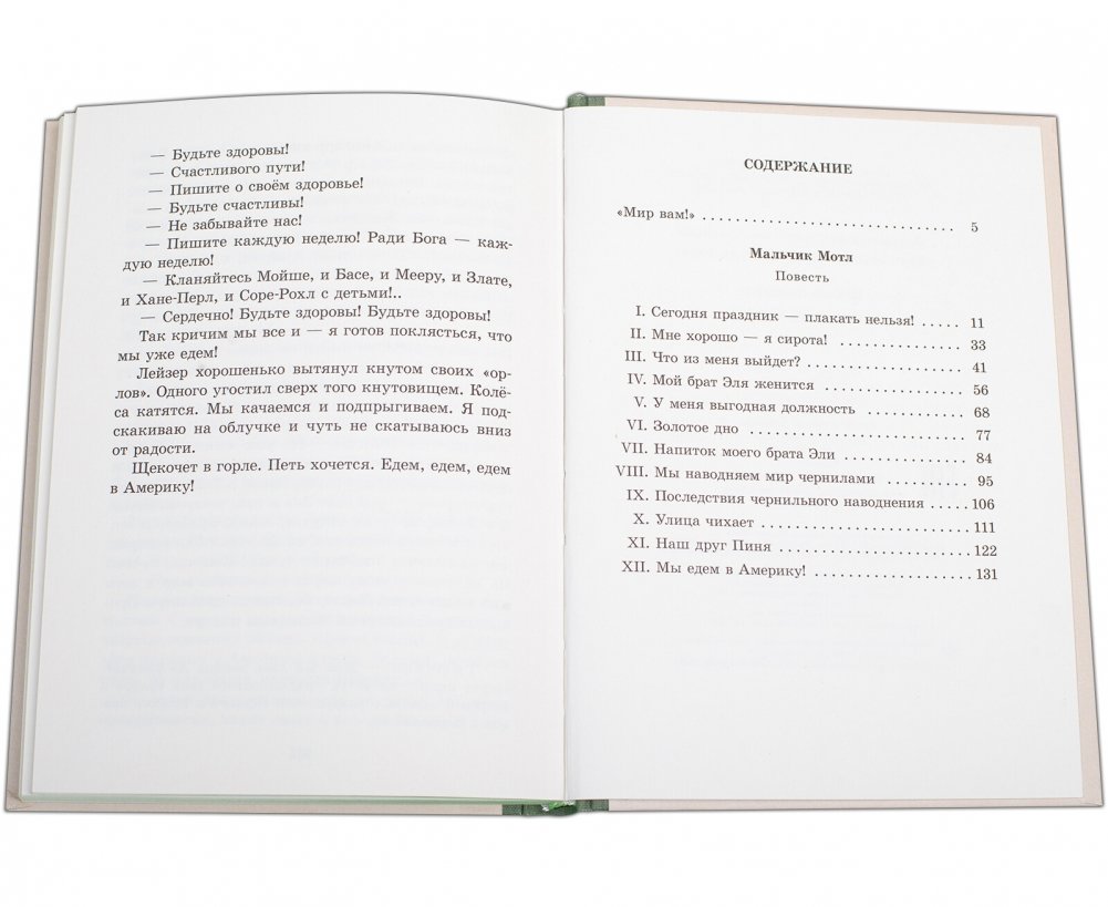 невзгоды, которые обрушиваются на него, он не унывает и даже в самых обыденных, повседневных вещах находит что-то новое и интересное. Издательство «Детская литература» публикует произведение в трёх книгах. В настоящем издании печатается первая часть повести о Мотле и его семье до их отъезда из родного местечка. Во второй книге описываются их скитания по Европе до отплытия в Америку, а в третьей — жизнь за океаном.