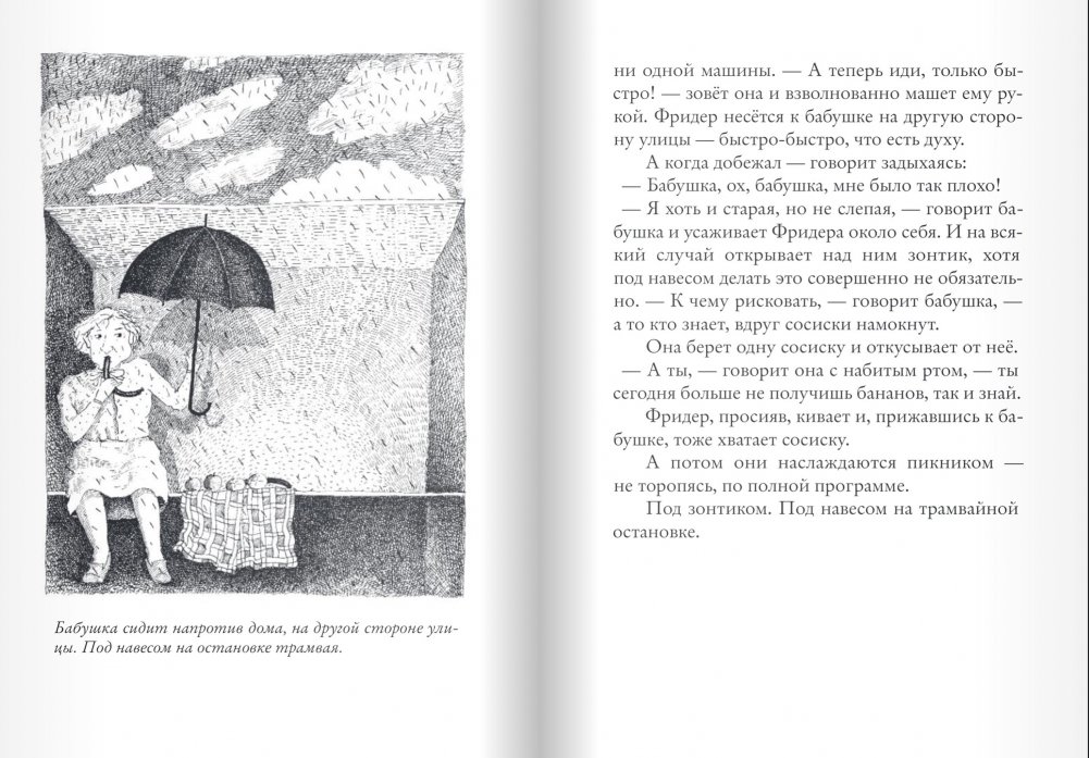 Фридер и его бабушка — отличная команда! Для них вся жизнь — сплошное приключение. И для этого совсем необязательно куда-то ехать: приключения повсюду — в саду, на кухне и даже на остановке трамвая. 42 истории из жизни пятилетнего неугомонного любопытного мальчишки, непоседы и проказника теперь собраны в одной книге. И в каждой истории стоит бабушке заняться делом, начать готовить есть или отправиться поливать цветы — Фридер тут как тут. А если его нет рядом, то он, скорее всего, уже рвет цветы с бабушкиной клумбы, мечтая её порадовать, потому что Фридер очень любит свою бабушку! И она— самая лучшая бабушка на свете — тоже