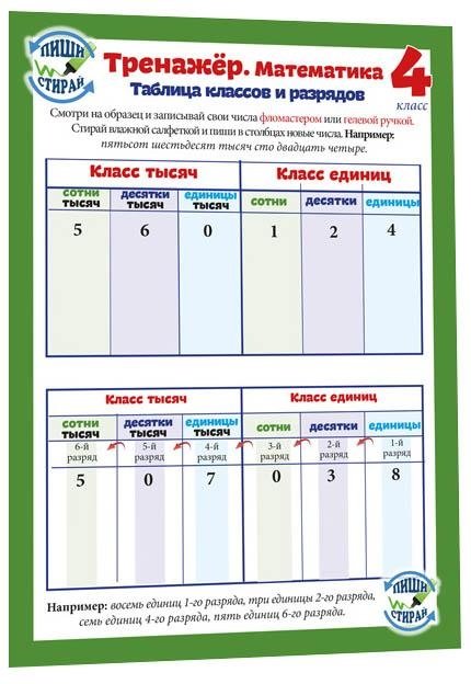 Справочные материалы: Тренажёр. Математика. 4 класс