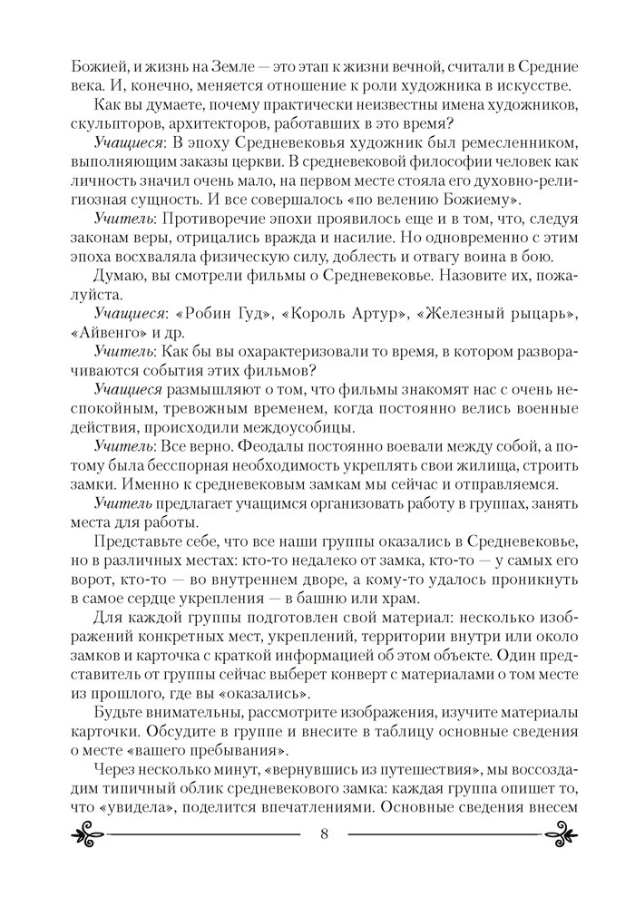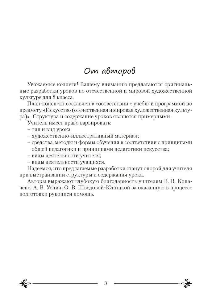 Пособие содержит методические разработки уроков по предмету «Искусство (отечественная и мировая художественная культура)» для 8 класса, которые соответствуют учебной программе. Представленный материал поможет педагогам в организации и проведении занятий.