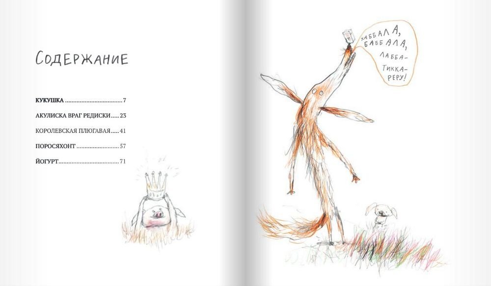 В первой книжке из серии историй о Лисе и Поросёнке мы знакомимся с ними и с другими удивительными персонажами. А кажется, что мы знакомы уже давно: с места в карьер, с первой же страницы, мы отправляемся с героями на поиски кукушки, которая исполняет любые желания, скачем верхом на королевской плюгавой, спасаем урожай редиски от вредной акулиски — грозы огородов, ищем драгоценные лисумруды и поросяхонты и притворяемся французским зелёным жаворонком, чтобы раздобыть йогурт с дыней.
