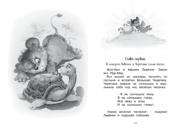 В книгу вошли любимые многими малышами сказочные повести Сергея Козлова о приключениях Львёнка по имени Ррр-Мяу и Большой Черепахи: «Я на солнышке лежу» и «Как Львёнок и Черепаха отправились в путешествие».