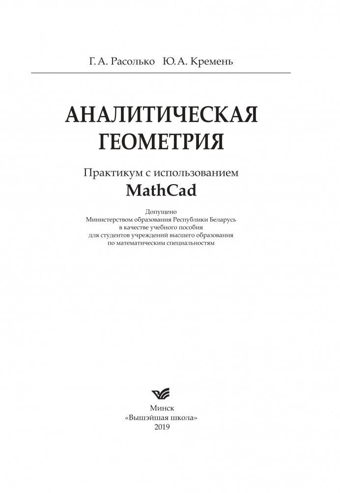 Учебное пособие соответствует образовательному стандарту по специальности «Математика», программе курса аналитической геометрии и методическим требованиям. Последовательность изложения материала, использование системы компьютерной атематики на примере MathCad отличают данное пособие от традиционных.
