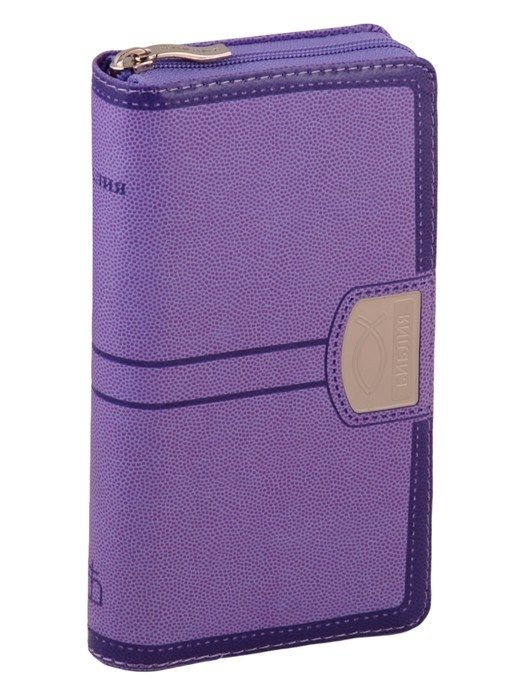 Библия. Книги Священного Писания Ветхого и Нового Завета канонические, кожаный переплет на молнии (фиолетовая)