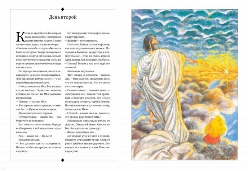 Создавать мир — та еще работенка. Неудивительно, что Бог загрустил и подумал: «Вот бы мне кто-нибудь помог». Тогда рядом с ним сразу появилась Мия. Вдвоем они придумали все на свете, от морей до морковок. А потом решили, что это хорошо, и оставили людям — чтобы мы радовались миру и приглядывали за ним.