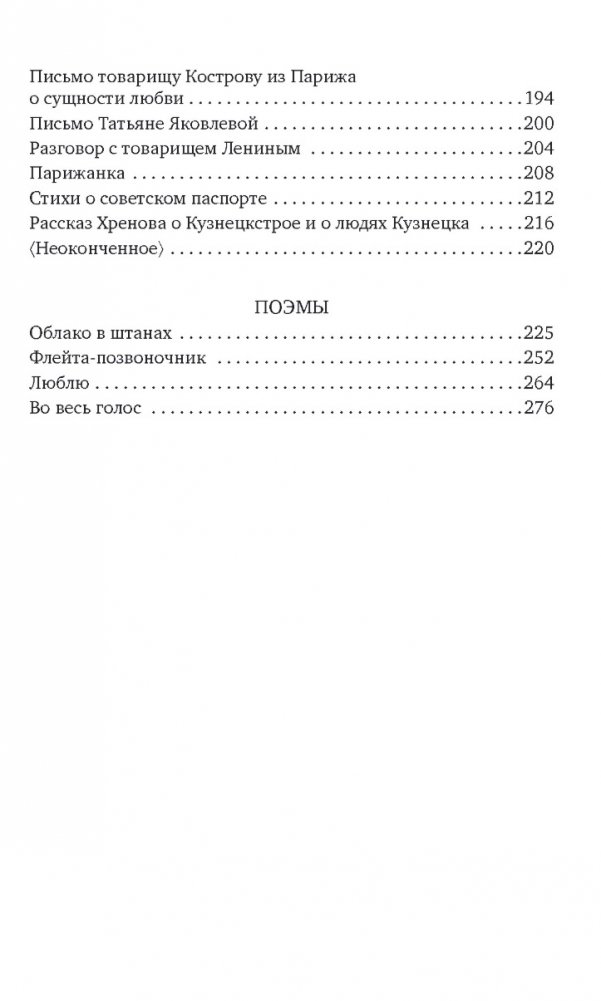 В настоящее издание вошли наиболее известные стихотворения и поэмы Владимира Маяковского — выдающегося поэта ХХ века, одного из лидеров русского авангарда. М. Цветаева называла его «первым в мире поэтом масс… первым русским поэтом-оратором». Маяковский, который «к штыку приравнял перо», стал подлинным голосом революции и символом советской эпохи. Но в истории литературы он остался не только в качестве «агитатора, горлана, главаря», своего рода летописца новой жизни. Как всякий большой поэт, Маяковский перерос свое время. О чем бы он ни писал: о любви к родине или о любви к женщине, прежде всего, он оставался поэтом-лириком, одним из самых пронзительных в русской литературе, творчество которого востребовано и новыми поколениями читателей.