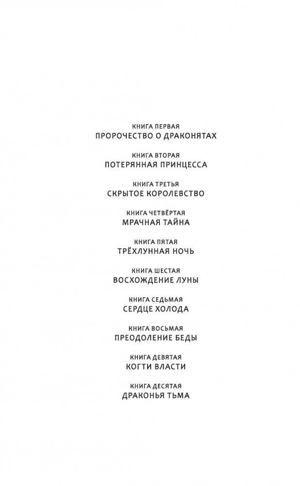 Первое истинное пророчество за многие поколения драконов — исполнится ли оно? Заговоры и чума, хитроумные заклятия магов, древнее чудовище, вырвавшееся из земных недр, — поглотит ли драконий мрак истерзанную войной Пиррию? Песчаный дракончик Вихрь мечтает о мирном и счастливом будущем для всех, но разве не о том же грезит надменный и жестокий Ночной король? Как остановить могущественного дракоманта, если сам не владеешь магией, — и как сохранить душу в целости, если уже овладел? В чём твоё предназначение — отменить пророчество или исполнить его невольно? Среди жарких песков и вечных льдов, в тропических лесах и болотах, горных ущельях и морских глубинах драконы снова надеются, что драконята спасут мир. Пятеро, как в прошлый раз, — или их уже больше? И найдут ли, наконец, герои свою любовь?