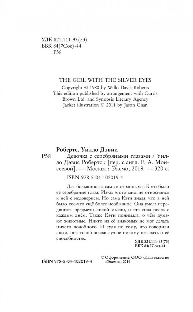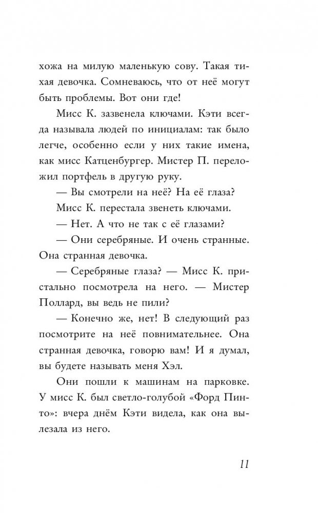 Для большинства самым странным в Кэти были её серебряные глаза. Из-за этого многие относились к ней с недоверием. Но сама Кэти знала, что в ней было кое-что ещё более необычное. Она умела передвигать предметы силой мысли, и эта сила росла с каждым днём. Также Кэти понимала, о чём думают животные. Никто из её знакомых не мог делать ничего подобного. И судя по тому, что говорили люди, она точно знала: лучше никому не знать о её способностях.