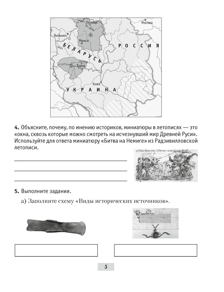Содержание рабочей тетради соответствует программе и учебному пособию по истории Беларуси для 6 класса под редакцией доктора исторических наук Ю. Н. Бохана. В ней приводятся разноуровневые вопросы и задания, а также необходимые для их выполнения карты, представленные в виде картосхем.
