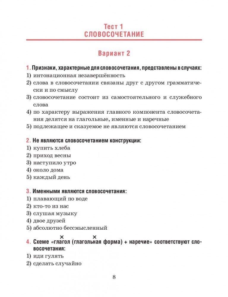 Пособие представляет собой сборник тестовых заданий по основным разделам курса русского языка, изучаемого в 8 классе. Тесты составлены в соответствии с учебной программой и учебником для учреждений общего среднего образования. Итоговый тест содержит задания на повторение материала, пройденного за весь учебный год.