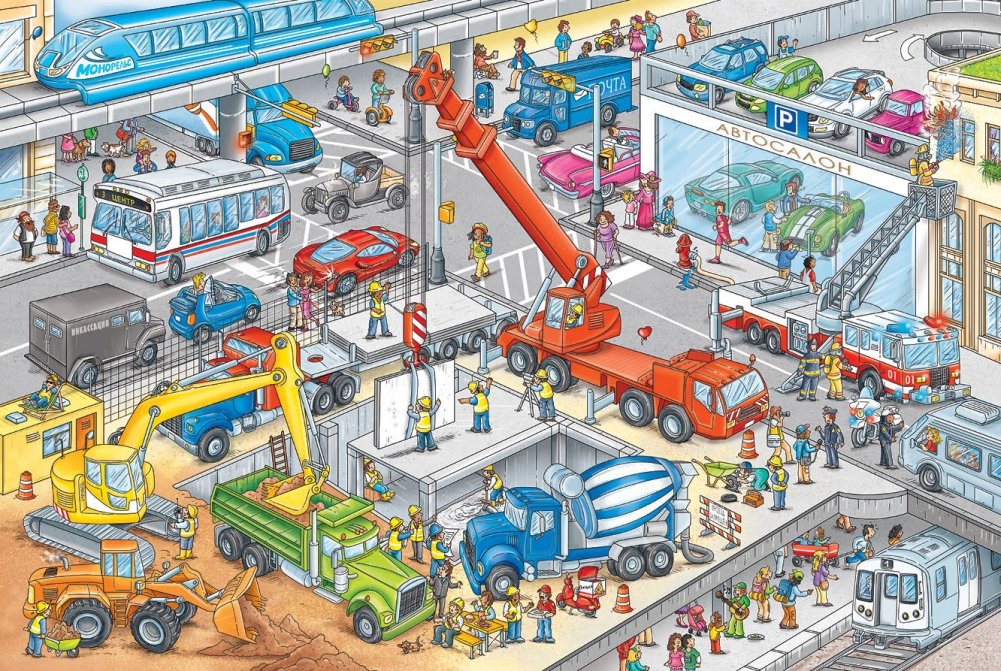 Книга расскажет об одном дне из жизни двух десятков главных героев – всех их нужно отыскать на каждом развороте книги. Кто-то из них ходит пешком, кто-то передвигается на машине, но их маршруты то и дело пересекаются, сюжетные линии перекрещиваются, складываясь в единую историю.