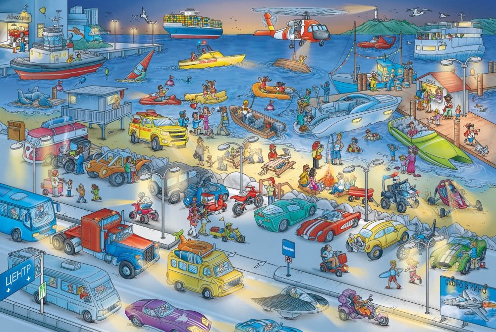 Виммельбух – книга на любой возраст. Самые маленькие с удовольствием рассматривают яркие крупные объекты, дети постарше с азартом выполняют задания по поиску персонажей на каждом развороте, а наиболее продвинутые читатели (включая и взрослых) подмечают самые мелкие детали и находят «шутки художника» без которых не обходится ни один виммельбух.