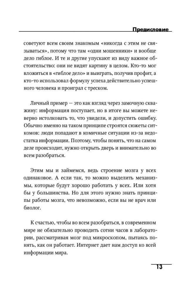 Прочитав эту книгу, вы получите в руки инструмент, который в состоянии изменить вашу жизнь на 180 градусов, ведь когда вы понимаете механизмы работы мозга, вы можете им управлять.