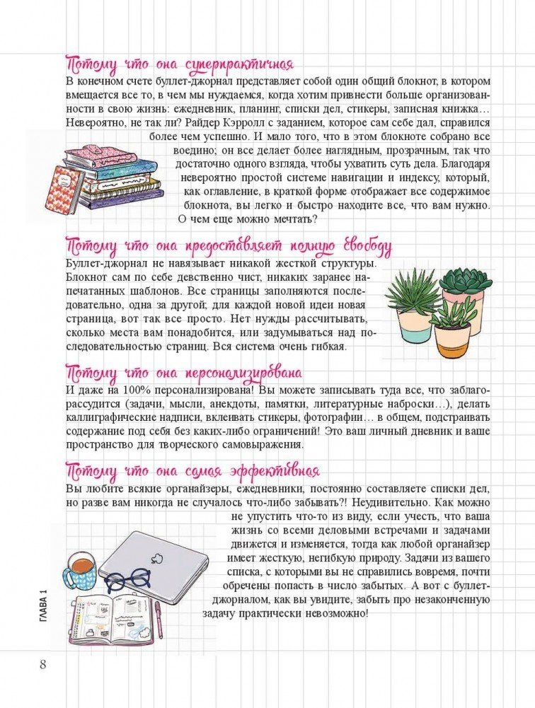 Вы наверняка слышали о буллет-журнале. Соединяющий в себе возможности органайзера, дневника, планнера и много чего еще, буллет-журнал позволит вам не держать все в голове, поможет оптимально организовать работу и планировать свои дни так, чтобы у вас осталось достаточно времени, которое вы могли бы уделить собственному благополучию. Буллет-ежедневник содержит в себе план осуществления каждого из ваших желаний!