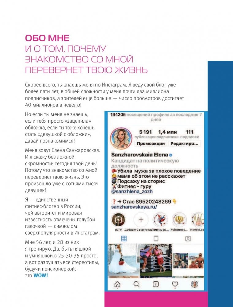 — авторскую программу тренировок, результативность которой доказана сотнями тысяч восхитительных женских тел, «построенных» по методике Елены Санжаровской;