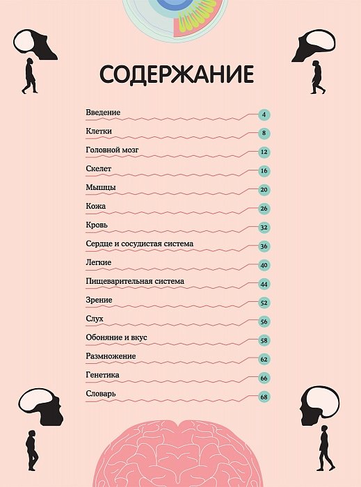 Эта книга познакомит вас со строением человеческого организма. Вы узнаете, какие органы есть в нашем теле, как они взаимосвязаны, насколько важные задачи выполняют и как работают. Вся информация воспринимается легко благодаря большим и красочным иллюстрациям. Вы сможете открыть для себя удивительные особенности строения некоторых животных и почерпнуть множество интересных сведений. Вам станет известно, какой размер мозга был у наших предков, как ухо воспринимает звуки, почему дети похожи на родителей и множество других интересных фактов.