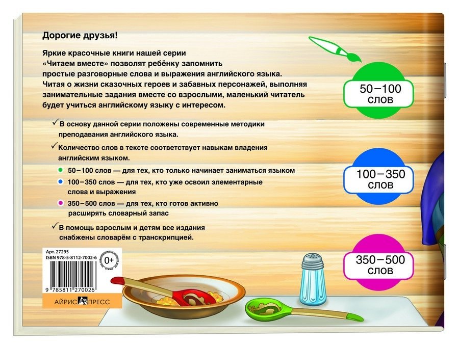 В нашей адаптации русской народной сказки говорится о мальчике, который проучил жадную старушку, потому что нужно уметь делиться и помогать тем, кто находится в беде. Прочитав сказку, ребёнок познакомится с простым настоящим временем (Present Simple), научится использовать слова some и any, а также познакомится с конструкцией "pass me..., please".