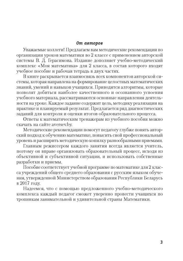 Пособие «Моя математика. 2 класс» содержит методические рекомендации по проведению уроков математики во 2 классе с использованием учебного пособия и рабочей тетради В. Д. Герасимова.