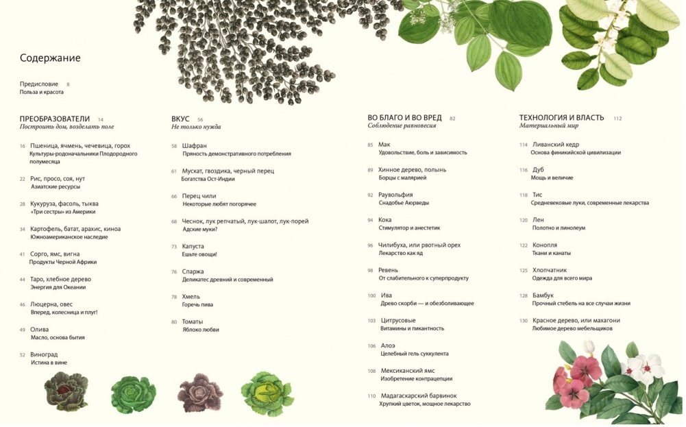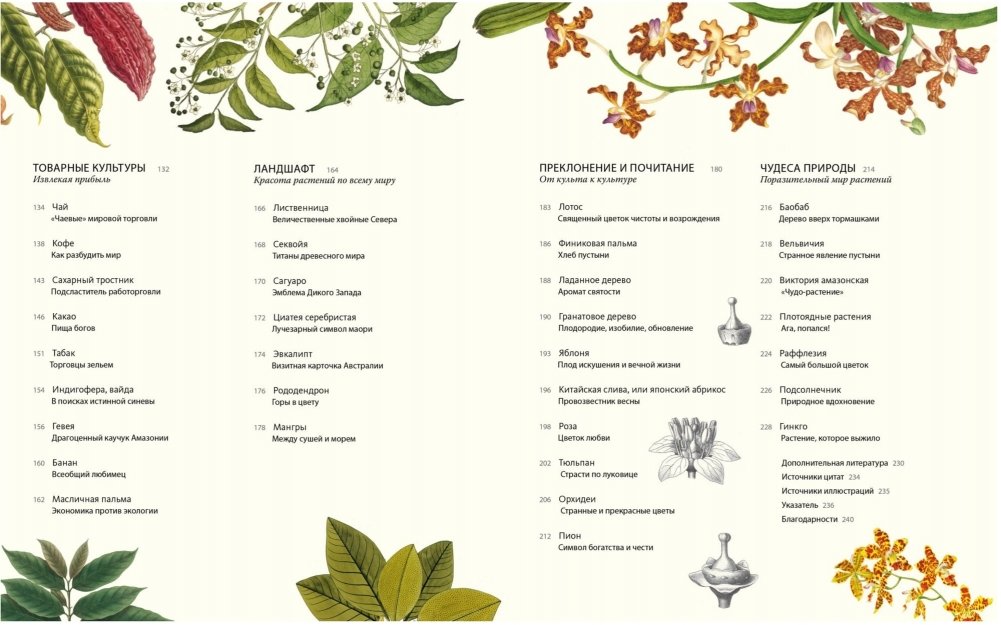 Развитие человечества невозможно представить себе без растений: на протяжении тысячелетий они дают нам пищу, кров, одежду, средства передвижения и лекарства. Хелен и Уильям Байнум — историки науки и медицины, а также страстные садоводы — прослеживают в этой книге историю взаимодействия людей с 80 ключевыми растениями на протяжении последних 12 000 лет. Они начинают с первых окультуренных злаков, заложивших основы развития цивилизаций (пшеница, рис, кукуруза), посвящают следующий раздел растениям, из которых создавался наш материальный мир — корабли, жилища, одежда, мебель (дуб, лен, хлопок), затем переходят к товарным культурам, радикально повлиявшим на мировую экономику, колониализм и постколониализм, равно как и на привычные нам модели потребления (чай, кофе, сахарный тростник). От тыквы и фасоли, пришедших из Америки, до африканских сорго и ямса, от бразильского каучука до китайского бамбука — географический охват книги грандиозен. Это потрясающее издание, иллюстрированное уникальными старинными рисунками, гравюрами, литографиями и картинами из собрания Королевских ботанических садов Кью в Лондоне, станет источником новых знаний и вдохновения для всех, кому интересна как история, антропология и культурология, так и ботаника, и для каждого, кто неравнодушен к красоте и разнообразию царства флоры.