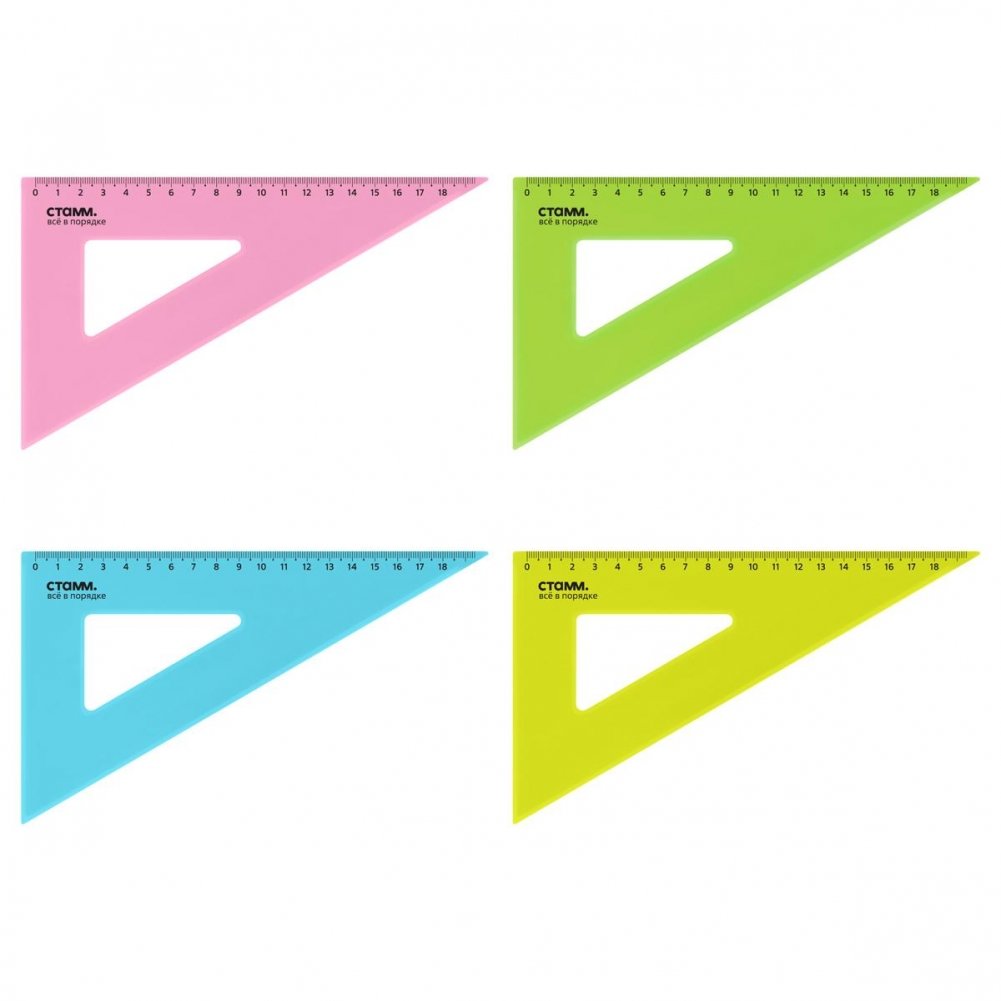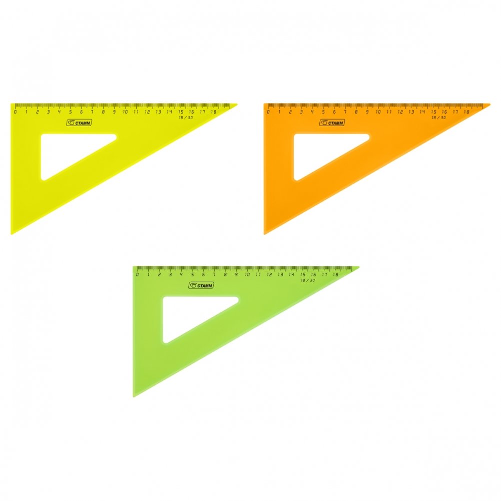 Треугольник 30°, 18см СТАММ, пластиковый, прозрачный, неоновые цвета, ассорти. Арт. ТК47