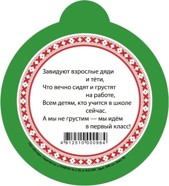 Медаль «Здравствуй, 1 класс» (зеленая)