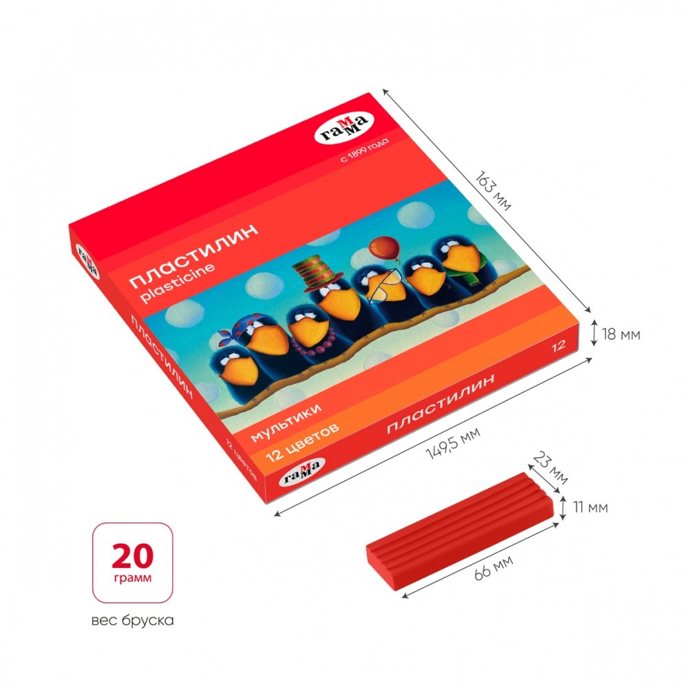 Пластилин Гамма "Мультики", 12 цветов, 240г, со стеком, картон. упаковка
