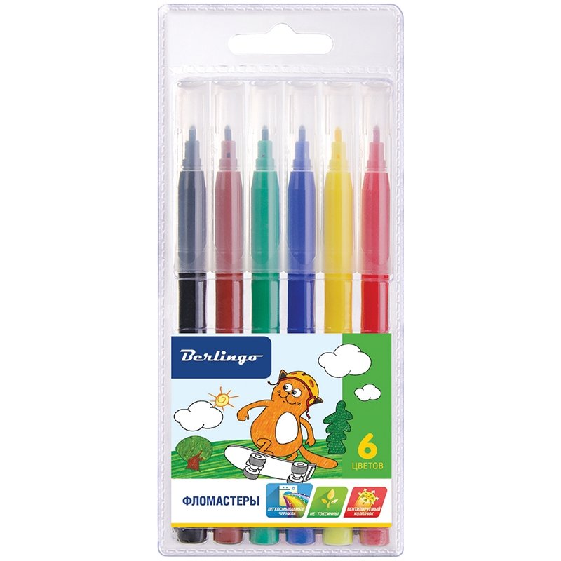 Легкосмываемые чернила, вентилируемый колпачок, нетоксичны, корпус изготовлен из полипропилена.
