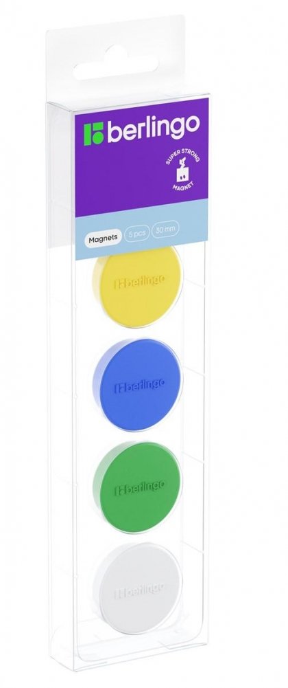 Магнит для досок усиленный Berlingo Ultra 30мм, 5шт., ассорти, европодвес. Арт. SMm_03020