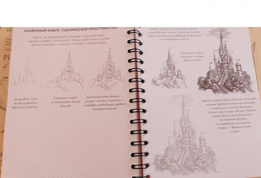 Скетчбук - это настоящая находка для творческих людей. Он может служить одновременно и учебником для рисования, и тетрадью для записей и рисунков, ведь на его страницах есть и упражнения для начинающих рисовальщиков, и пространство для собственных креативных идей. Удобный корешок на пружине позволяет повернуть блокнот на 360 градусов и использовать в качестве планшета, чтобы записывать и зарисовывать прямо на ходу!
