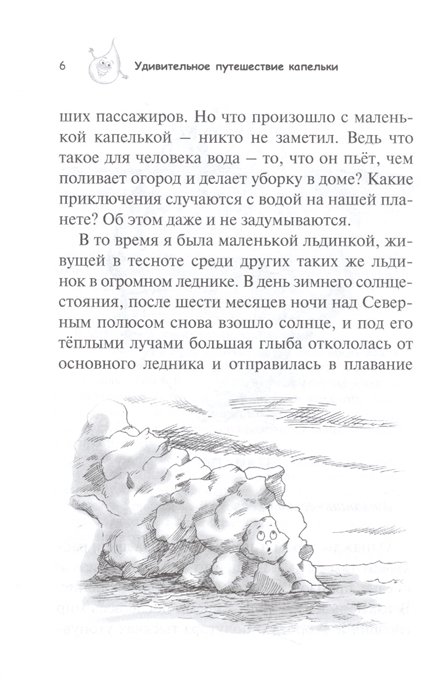 Она расскажет, каково быть неподвижной льдинкой и жить в леднике, плавать капелькой в океане и даже летать облачком в небе.