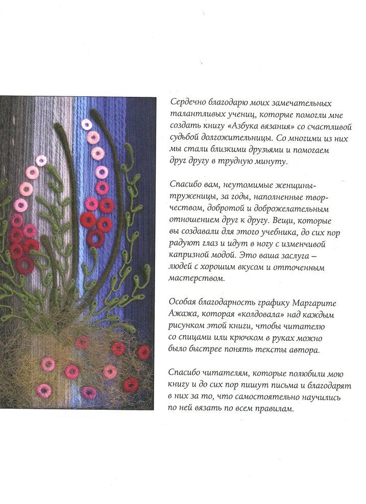 Книга построена в виде последовательных уроков, в которых понятным языком изложены основы вязания на спицах и крючком, включая построение выкроек на разные типы фигур. Текст книги сопровождается большим количеством схем, узоров и моделей для вязания женской, мужской и детской одежды, а также аксессуаров для дома.