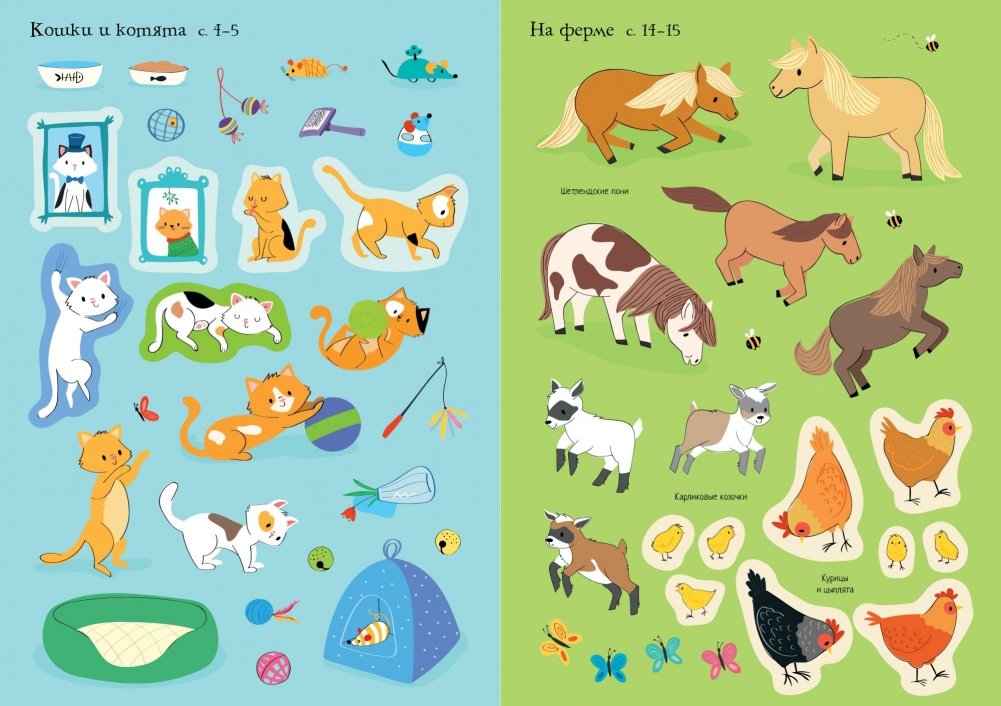 В этой книжке тебя ждут милые и забавные питомцы – котята, щенки, хомячки и попугаи. Подбери зверятам домики, приклей игрушки и лакомства.