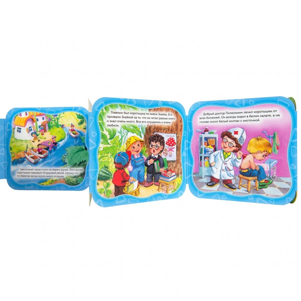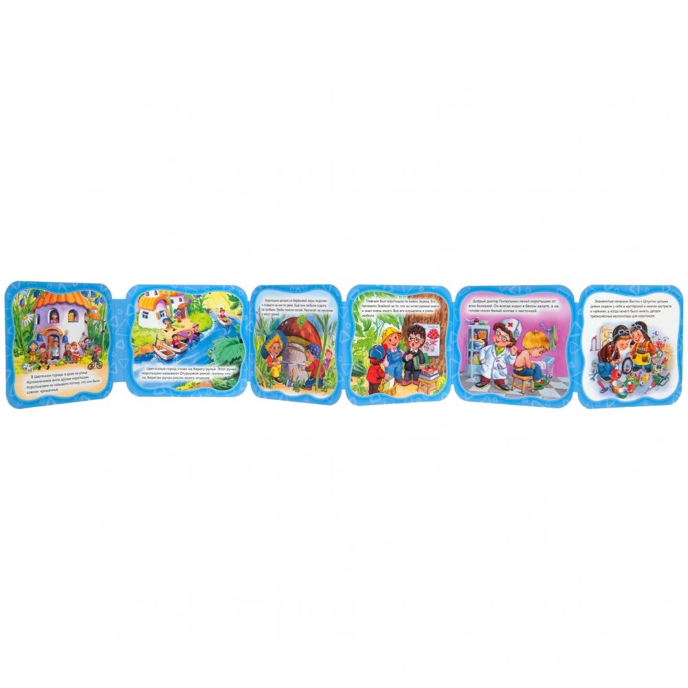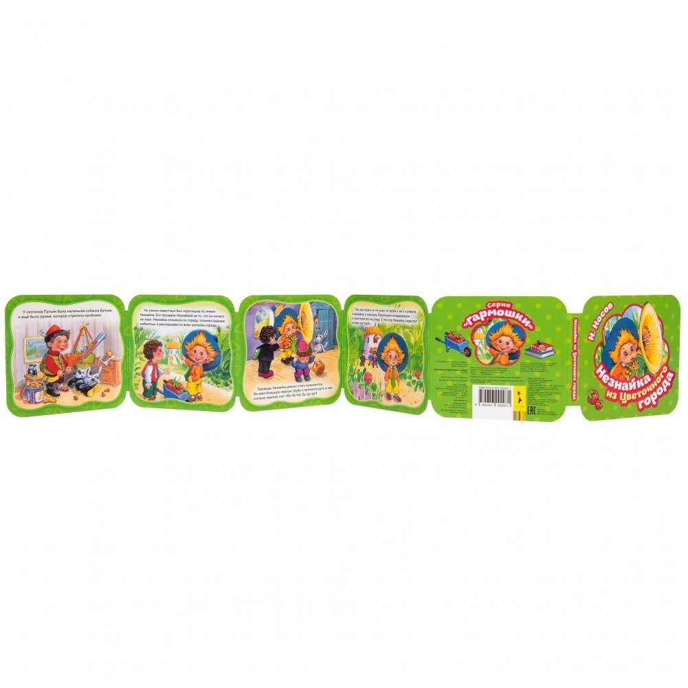 Познакомьтесь это Незнайка, малыш-коротышка, который живет в Цветочном городе. Задиристый, изобретательный, веселый и очень обаятельный! Книжка-гармошка с яркими, веселыми иллюстрациями прекрасно подойдет для совместного чтения и игры с ребенком.