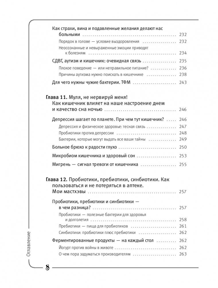 В новой книге доктор Зубарева рассказывает о кишечнике — "втором мозге" человека. Триллионы бактерий человеческого организма составляют микробиом — единую экосистему, огромную роль в функционировании которой играет кишечник. Этот орган непосредственно влияет на наше здоровье: кожу, иммунитет, вес, эмоциональное состояние, работу мозга и даже гормональный фон. В книге представлены выводы, основанные на данных фундаментальной медицины, подкрепленных последними исследованиями российских и западных ученых, а также практикой функциональной медицины. Автор делится профессиональным опытом и своим взглядом на диагностику и лечение заболеваний, связанных с дисфункциями ЖКТ. Читатель узнает, что связывает кишечник и мозг, как бактерии управляют нашим самочувствием, настроением и привычками, к каким болезням ведет неправильное питание, а также еще очень много важной информации — от антибиотиков и аллергии до секретов красивой и здоровой кожи. Позаботьтесь о своем микробиоме — а он позаботится о том, чтобы вы были здоровы и счастливы!