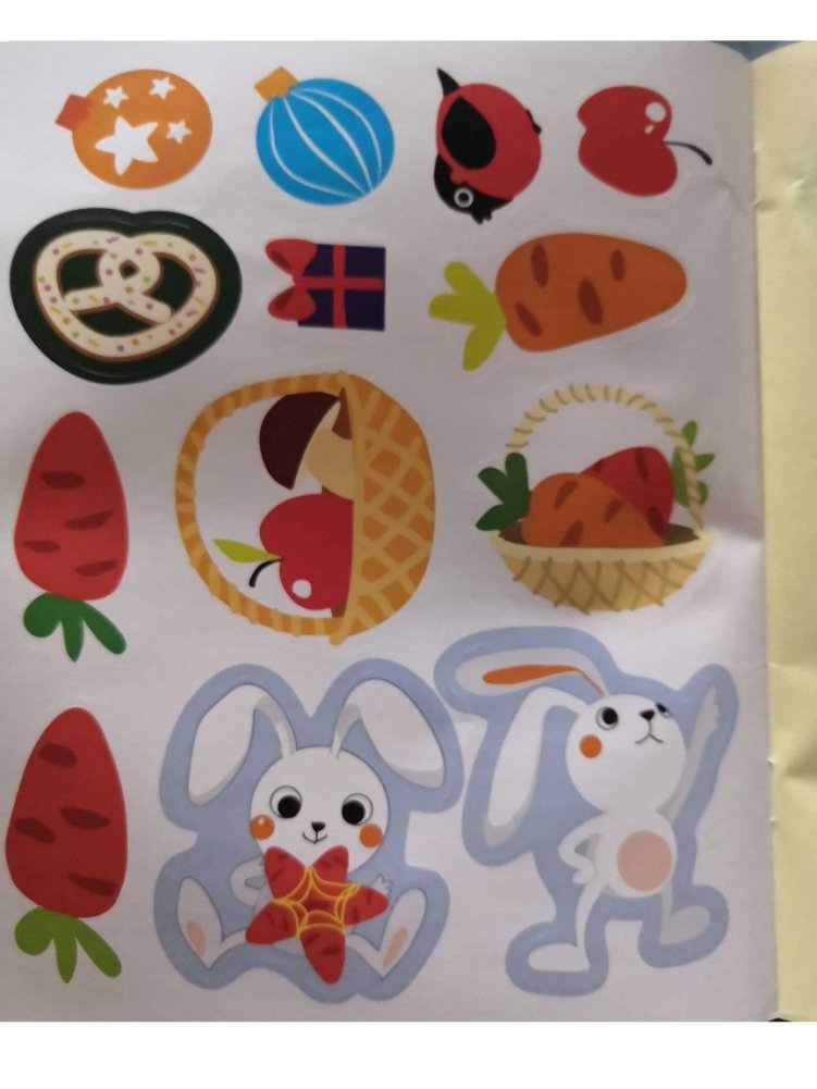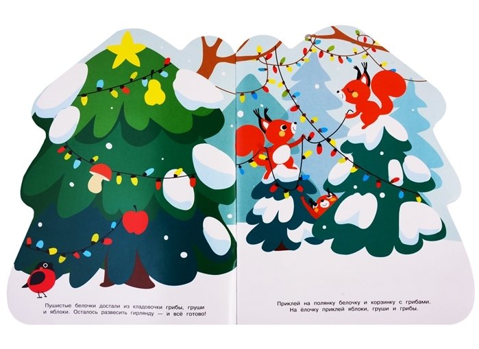 Давай украсим елочки вместе с лесными зверюшками. А яркие наклейки помогут нам в этом.