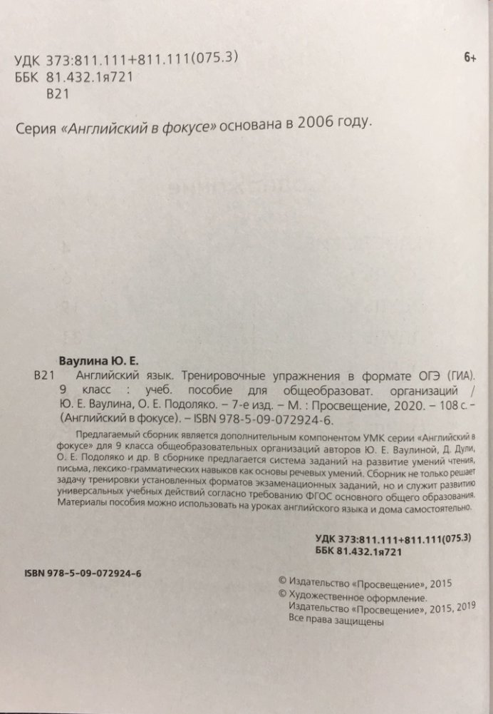 Английский язык. Английский в фокусе. 9 класс. Тренировочные задания в формате ОГЭ (ГИА)