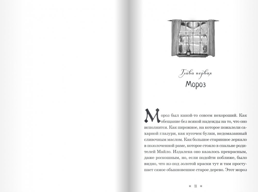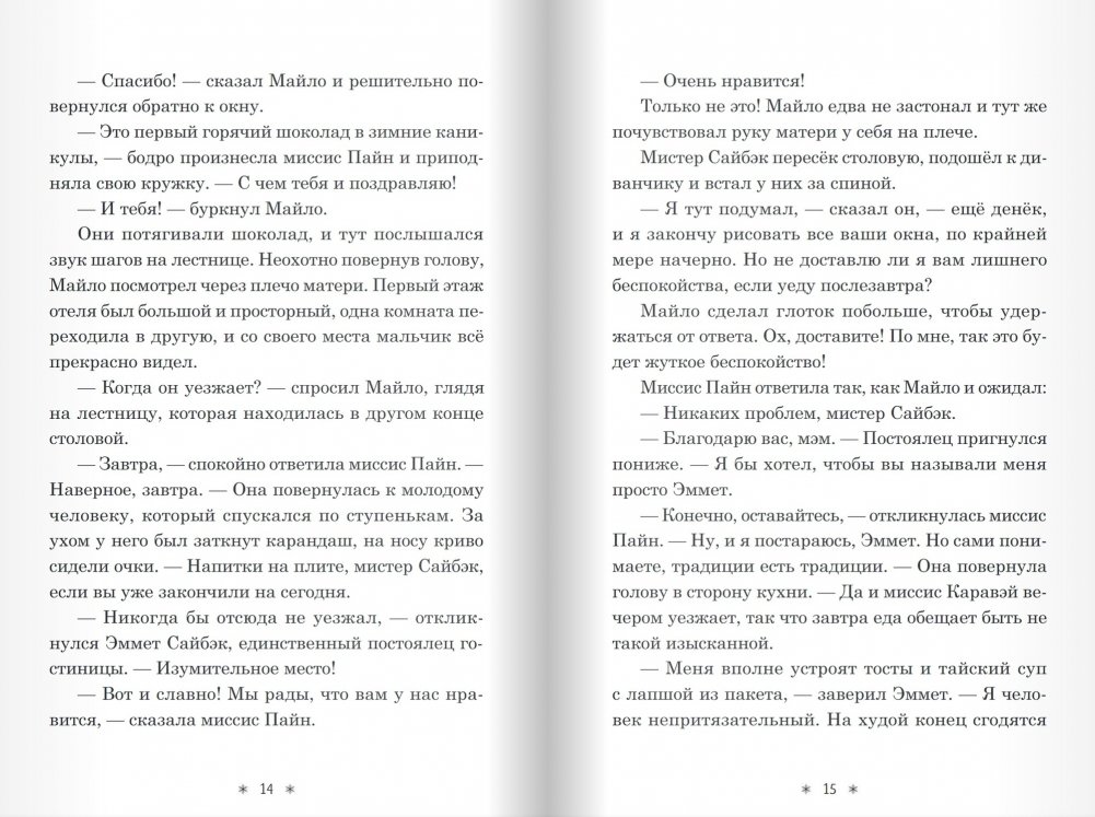 Зимние каникулы не задались с самого начала. Во-первых, снега на улице как не бывало. Во-вторых, у Майло выдалась пара тяжёлых недель в школе. Да ещё этот гость, студент-художник, который, похоже, не уедет, пока не зарисует каждый витраж в доме. Но хуже всего то, что Мэдди не появляется целый год.