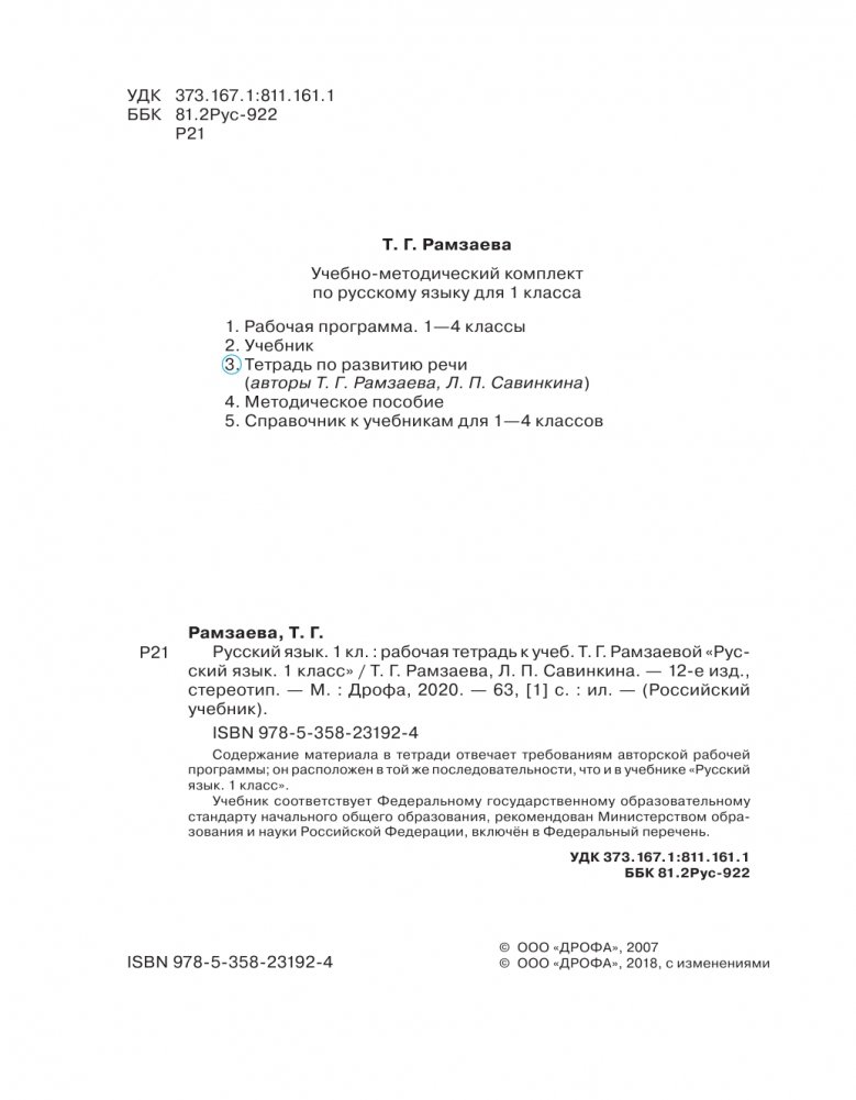 Ранее называлась "Тетрадь для упражнений по русскому языку и речи к учебнику Т.Г. Рамзаевой "Русский язык. 1 класс".