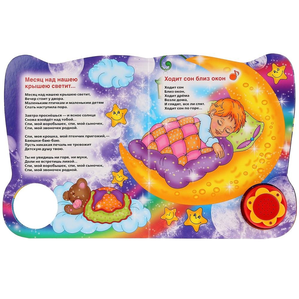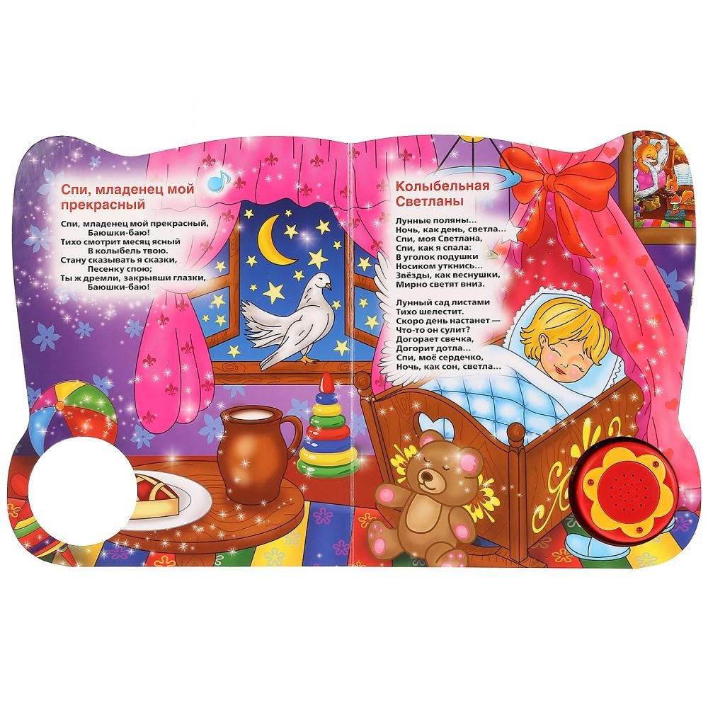Эти звуковые книги очень понравятся вашему малышу своими красочными иллюстрациями, весёлыми историями по мотивам любимых мультфильмов и песенками. Волшебная кнопка при нажатии мигает!