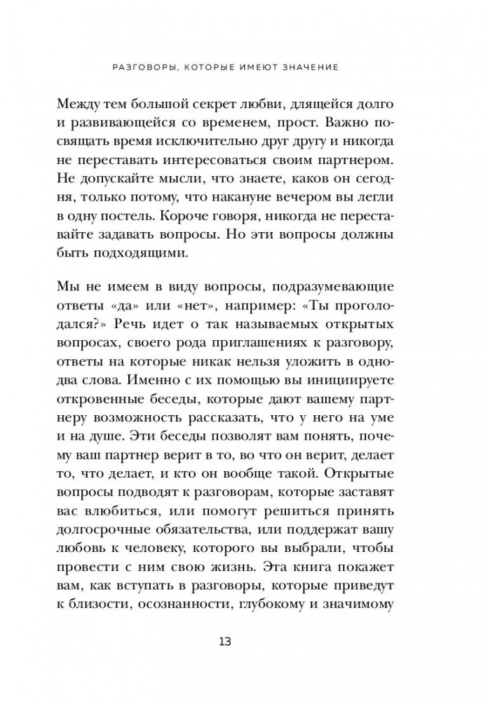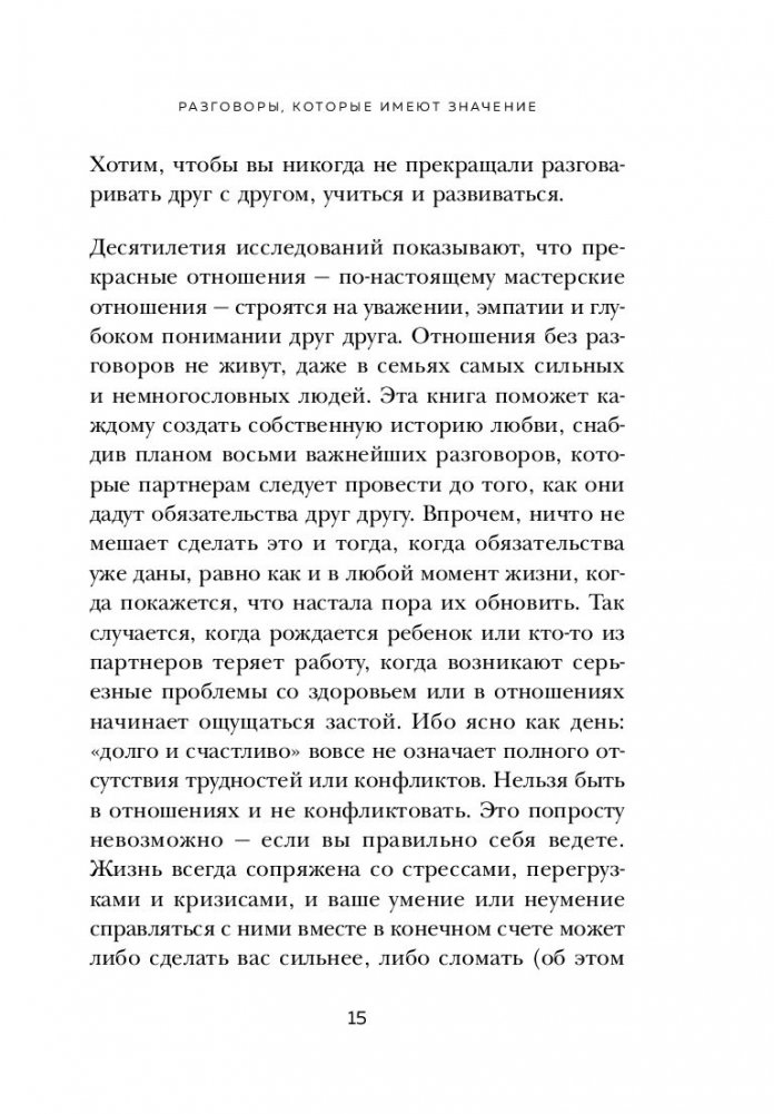 Каждая глава в этой книге проведет вас по одному из восьми особенных свиданий-разговоров на важные для отношений темы: доверие и финансы, решение конфликтов и секс, семья и развитие, мечты и приключения. Эти свидания помогут лучше узнать партнера и даже заново в него влюбиться.