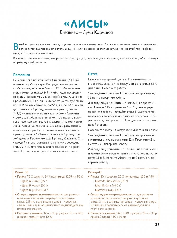Большой сборник идей для вязания теплых и модных мужских носков на любой вкус! В этой книге собрано более 20 лучших моделей носков, связанных спицами, от известных финских дизайнеров. В книге вы найдете и традиционные однотонные носки, и проекты в технике жаккард и интарсия, и модели, украшенные объемными узорами из кос, и носки с укороченным паголенком, и даже гольфы. Для любителей интересных стилей и расцветок эта книга станет настоящей находкой, ведь в ней есть не только классические модели, но и носки в камуфляжной расцветке, и узоры с черепами, и многоцветные рисунки с животными, и даже носки с портретом Альберта Эйнштейна! Размерная сетка представленных моделей включает размеры от 38-го до 47-го. В конце книги вас ждет бонус: скандинавская техника вязания иглой и две дополнительные модели в этой технике с пошаговыми инструкциями.