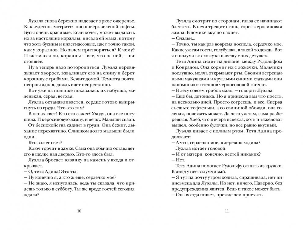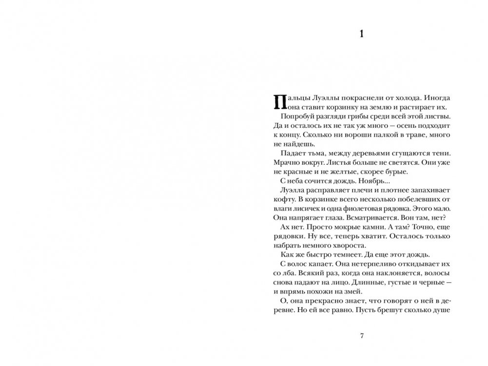 Луэлла живет в лесу с двумя братьями-малышами — вдали от других людей. Она очень ждет маму, а папу совсем не помнит. Мама иногда присылает письма, вместо папы Луэлла соорудила пугало. Странно? Да, Луэлла — странная девочка. Она может даже напугать, особенно когда произносит слова, похожие на заклинание: «Змеюшкины слезы, луноцвет, волчья капуста…»