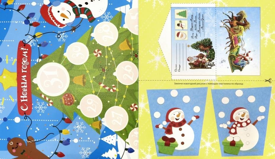 Наполните предновогодние две недели праздничным настроением, приключениями и волшебством! Повесьте плакат-ёлочку, положите в конверт карточку с заданием и наклейку с сегодняшней датой. Выполняя по одному заданию каждый день, вы с малышом напишете письмо Деду Морозу, сделаете множество поделок для украшения ёлки или дома, выучите зимнее стихотворение и весело проведёте время вместе. Поощряйте ребёнка небольшими сувенирами, фруктами или сладостями за выполненные задания. Счастливого Нового года!
